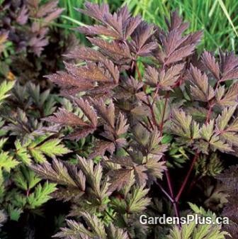 ‘Hillside Black Beauty’ offers deep purple-black foliage. From late spring to late summer, its dark hue makes a wonderful backdrop for colorful foliage and flowering shade plants. In fall, fragrant, cream-colored flowers appear on tall, wandlike stems. Easy care just provide moist, fertile soil rich in organic matter in partial shade. Great companion to Hosta Also a great plant in a woodland setting with ferns etc. Blooms in late summer early fall. We love using them instead of Japanese Maples for the same cut leaves and colourful foliage. Zone 5