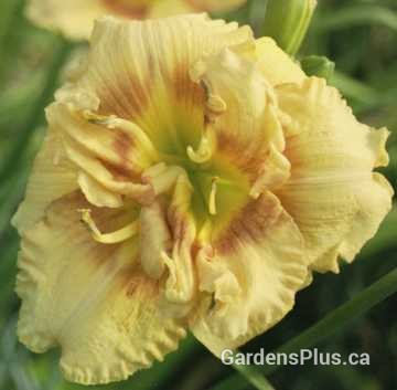 Double 5″ creamy peach bloom with rose halo.