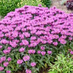 Proven Winners introduction.  Prepare for UPSCALE® Bee Balm to raise your expectations with a robust, substantial landscape presence. Taller than most other new introductions on the market, the UPSCALE® collection averages 2-2½’ tall and wide with flowering performance that covers the top half of the plant. This series is excellent for landscape plantings and filling space in the middle of the border. Well-branched stems support a second flush of flowers that extends the length of bloom, a trait that will delight both gardeners and the bees who frequent this popular pollinator perennial. Members of this collection all exhibit good mildew resistance.  ‘Lavender Taffeta’ has dark lavender purple flowers covering shiny, dark green foliage.  Zone 5