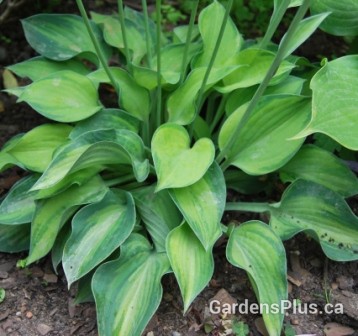 Sport of ‘Gold Drop’.  Great showy round thick leaves of gold with blue-green margin to brighten up any garden.